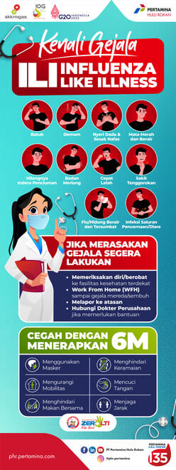 Pekerjaan desain XBanner Departmen HSSE Med dengan Materi ILI (Influenza Like Illness) Pertamina Hulu Rokan dengan hasil akhir X-Banner yang dicetak dan di kampanyekan di seluruh wilayah operasi PHR
